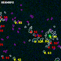 Object #5003 x,y = (3375, 1660) RA, Dec = (15:18:24.696, -81:31:25.32) = (229.60290, -81.52370) BPZ = 0.918 [0.678--1.835] type = 9.30 (SB2_B10 - SB3_B10) chisq2 = 1.26 ODDS = 0.28 z_cluster = 0.480