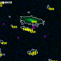 Object #559 x,y = (2160, 4070) RA, Dec = (15:18:57.624, -81:29:00.60) = (229.74010, -81.48350) BPZ = 1.578 [1.018--2.407] type = 11.00 (SB11_A_0_l) chisq2 = 8.81 ODDS = 0.18 z_cluster = 0.480