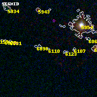 Object #6110 x,y = (2325, 1087) RA, Dec = (15:18:53.208, -81:31:59.88) = (229.72170, -81.53330) BPZ = 0.914 [0.103--1.063] type = 11.00 (SB11_A_0_l) chisq2 = 7.40 ODDS = 0.55 z_cluster = 0.480