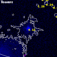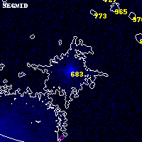 Object #683 x,y = (4162, 3822) RA, Dec = (15:18:03.528, -81:29:15.36) = (229.51470, -81.48760) BPZ = 0.122 [0.019--0.410] type = 8.10 (SB1_B10 - SB2_B10) chisq2 = 0.00 ODDS = 0.40 z_cluster = 0.480