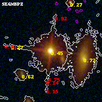 Object #781 x,y = (2595, 3843) RA, Dec = (15:18:45.888, -81:29:14.28) = (229.69120, -81.48730) BPZ = 0.445 [0.373--0.568] type = 3.00 (Ell5_A_0) chisq2 = 0.10 ODDS = 0.55 z_cluster = 0.480