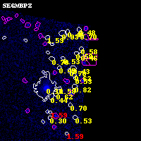 Object #809 x,y = (4400, 3883) RA, Dec = (15:17:57.096, -81:29:11.76) = (229.48790, -81.48660) BPZ = 0.701 [0.309--4.602] type = 2.00 (Ell6_A_0) chisq2 = 0.01 ODDS = 0.13 z_cluster = 0.480