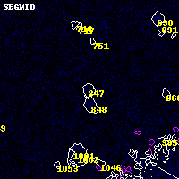 Object #847 x,y = (3870, 3867) RA, Dec = (15:18:11.424, -81:29:12.84) = (229.54760, -81.48690) BPZ = 0.507 [0.411--0.901] type = 2.50 (Ell5_A_0 - Ell6_A_0) chisq2 = 0.00 ODDS = 0.73 z_cluster = 0.480