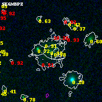 Object #888 x,y = (1444, 3828) RA, Dec = (15:19:16.968, -81:29:15.36) = (229.82070, -81.48760) BPZ = 0.919 [0.884--1.481] type = 6.60 (Scd_B10 - Sbc_B10) chisq2 = 0.04 ODDS = 0.30 z_cluster = 0.480