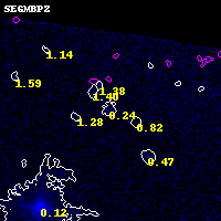 Object #965 x,y = (4224, 3910) RA, Dec = (15:18:01.872, -81:29:10.32) = (229.50780, -81.48620) BPZ = 0.238 [0.113--3.001] type = 10.00 (SB3_B10) chisq2 = 0.00 ODDS = 0.05 z_cluster = 0.480