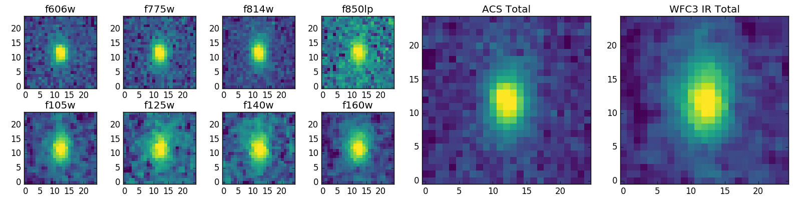 Black segments are analyzed here. Roll mouse over color images to view segments. Best viewed in a wide browser window (1200 pixels or more). Download SED & P(z) plots to view larger versions.