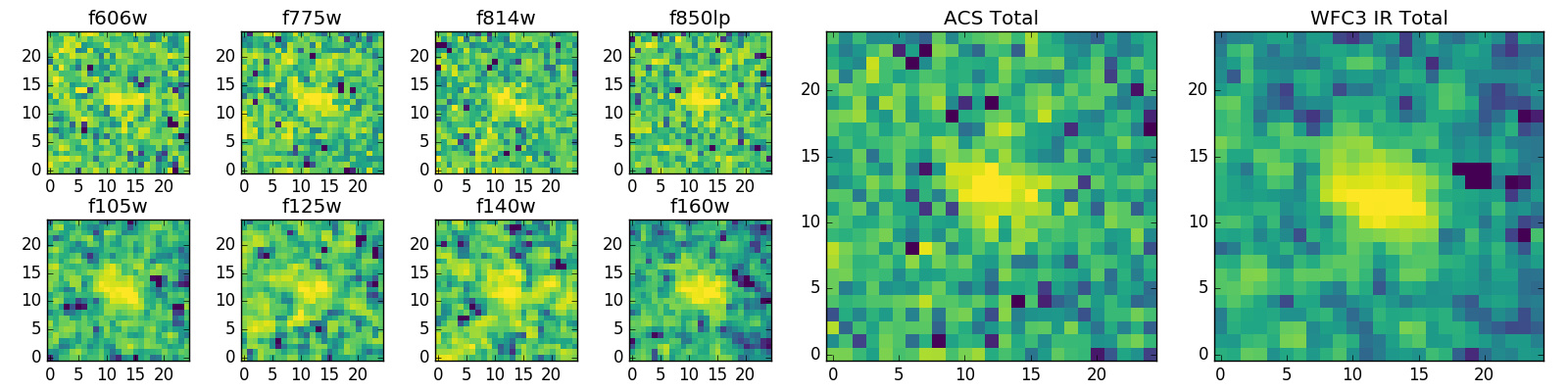 Black segments are analyzed here. Roll mouse over color images to view segments. Best viewed in a wide browser window (1200 pixels or more). Download SED & P(z) plots to view larger versions.