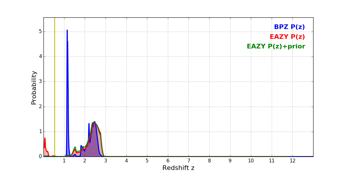 In P(z) plots: Yellow lines mark the cluster redshift z = 0.546,