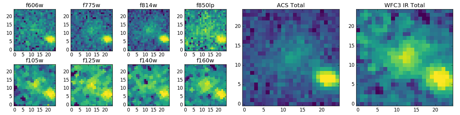 Black segments are analyzed here. Roll mouse over color images to view segments. Best viewed in a wide browser window (1200 pixels or more). Download SED & P(z) plots to view larger versions.