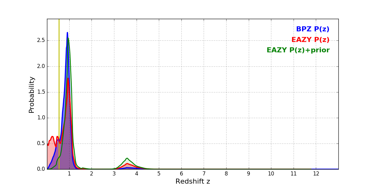 In P(z) plots: Yellow lines mark the cluster redshift z = 0.546,