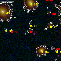 Object #3509 x,y = (1911, 2238) RA, Dec = (00:32:13.728, 18:07:37.20) = (8.05720, 18.12700) BPZ = 0.979 [0.844--1.131] type = 9.80 (SB3_B10 - SB2_B10) chisq2 = 3.10 ODDS = 0.72 z_cluster = 0.396