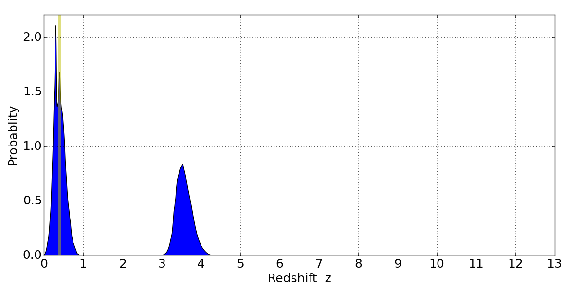 Best viewed in a wide browser window (1200 pixels or more). Download SED & P(z) plots to view larger versions.