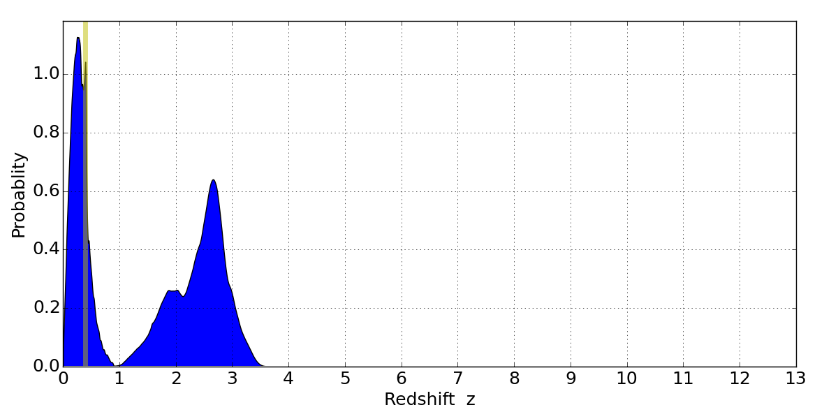 Best viewed in a wide browser window (1200 pixels or more). Download SED & P(z) plots to view larger versions.