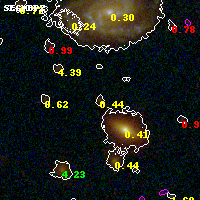 Object #5001 x,y = (2218, 1270) RA, Dec = (00:32:12.456, 18:06:38.88) = (8.05190, 18.11080) BPZ = 0.437 [0.118--3.677] type = 9.10 (SB2_B10 - SB3_B10) chisq2 = 0.40 ODDS = 0.21 z_cluster = 0.396
