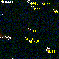 Object #1122 x,y = (2781, 3539) RA, Dec = (00:32:10.080, 18:08:55.32) = (8.04200, 18.14870) BPZ = 1.125 [0.347--1.811] type = 8.60 (SB2_B10 - SB1_B10) chisq2 = 0.08 ODDS = 0.31 z_cluster = 0.396