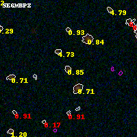 Object #1465 x,y = (2838, 3332) RA, Dec = (00:32:09.840, 18:08:42.72) = (8.04100, 18.14520) BPZ = 0.848 [0.488--1.026] type = 9.10 (SB2_B10 - SB3_B10) chisq2 = 0.10 ODDS = 0.45 z_cluster = 0.396