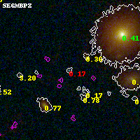 Object #2067 x,y = (2128, 2936) RA, Dec = (00:32:12.816, 18:08:18.96) = (8.05340, 18.13860) BPZ = 0.172 [0.103--0.278] type = 10.40 (SB3_B10 - SB11_A_0_l) chisq2 = 1.18 ODDS = 0.74 z_cluster = 0.396