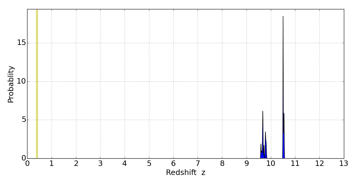 Best viewed in a wide browser window (1200 pixels or more). Download SED & P(z) plots to view larger versions.
