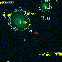 Object #563 x,y = (2249, 4052) RA, Dec = (00:32:12.312, 18:09:25.92) = (8.05130, 18.15720) BPZ = 0.923 [0.273--3.168] type = 10.30 (SB3_B10 - SB11_A_0_l) chisq2 = 4.58 ODDS = 0.16 z_cluster = 0.396