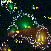 Black segments are analyzed here. Roll mouse over color images to view segments. Best viewed in a wide browser window (1200 pixels or more). Download SED & P(z) plots to view larger versions.