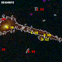 Object #1095   x,y = (2615, 3537)   RA, Dec = (00:32:10.776, 18:08:54.96) = (8.04490, 18.14860)   BPZ = 3.105 [0.263--3.316]   type = 8.00 (SB1_B10)   chisq2 = 0.30   ODDS = 0.71   z_cluster = 0.396