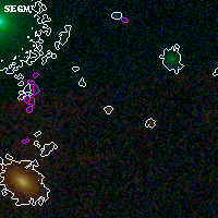 Black segments are analyzed here. Roll mouse over color images to view segments. Best viewed in a wide browser window (1200 pixels or more). Download SED & P(z) plots to view larger versions.