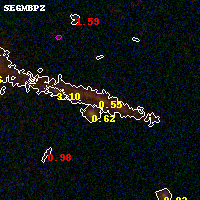 Object #1126   x,y = (2657, 3529)   RA, Dec = (00:32:10.608, 18:08:54.60) = (8.04420, 18.14850)   BPZ = 0.548 [0.160--0.685]   type = 7.80 (SB1_B10 - Scd_B10)   chisq2 = 0.00   ODDS = 0.57   z_cluster = 0.396