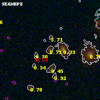 Black segments are analyzed here. Roll mouse over color images to view segments. Best viewed in a wide browser window (1200 pixels or more). Download SED & P(z) plots to view larger versions.