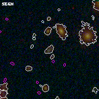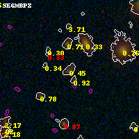 Black segments are analyzed here. Roll mouse over color images to view segments. Best viewed in a wide browser window (1200 pixels or more). Download SED & P(z) plots to view larger versions.