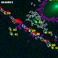 Black segments are analyzed here. Roll mouse over color images to view segments. Best viewed in a wide browser window (1200 pixels or more). Download SED & P(z) plots to view larger versions.