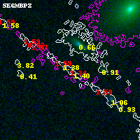 Black segments are analyzed here. Roll mouse over color images to view segments. Best viewed in a wide browser window (1200 pixels or more). Download SED & P(z) plots to view larger versions.