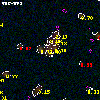 Black segments are analyzed here. Roll mouse over color images to view segments. Best viewed in a wide browser window (1200 pixels or more). Download SED & P(z) plots to view larger versions.