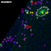 Black segments are analyzed here. Roll mouse over color images to view segments. Best viewed in a wide browser window (1200 pixels or more). Download SED & P(z) plots to view larger versions.