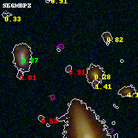 Black segments are analyzed here. Roll mouse over color images to view segments. Best viewed in a wide browser window (1200 pixels or more). Download SED & P(z) plots to view larger versions.