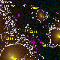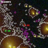 Object #1743   x,y = (2612, 3072)   RA, Dec = (00:32:10.800, 18:08:27.24) = (8.04500, 18.14090)   BPZ = 0.658 [0.542--1.064]   type = 9.50 (SB3_B10 - SB2_B10)   chisq2 = 1.55   ODDS = 0.43   z_cluster = 0.396