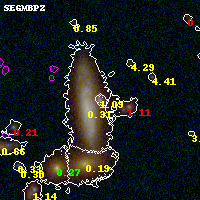 Black segments are analyzed here. Roll mouse over color images to view segments. Best viewed in a wide browser window (1200 pixels or more). Download SED & P(z) plots to view larger versions.