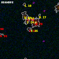 Black segments are analyzed here. Roll mouse over color images to view segments. Best viewed in a wide browser window (1200 pixels or more). Download SED & P(z) plots to view larger versions.