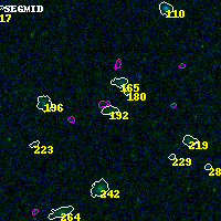Black segments are analyzed here. Roll mouse over color images to view segments. Best viewed in a wide browser window (1200 pixels or more). Download SED & P(z) plots to view larger versions.