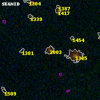 Object #2003   x,y = (3218, 3302)   RA, Dec = (00:32:08.232, 18:08:40.92) = (8.03430, 18.14470)   BPZ = 0.694 [0.144--0.850]   type = 7.80 (SB1_B10 - Scd_B10)   chisq2 = 0.49   ODDS = 0.45   z_cluster = 0.396
