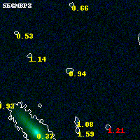 Black segments are analyzed here. Roll mouse over color images to view segments. Best viewed in a wide browser window (1200 pixels or more). Download SED & P(z) plots to view larger versions.
