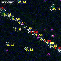 Black segments are analyzed here. Roll mouse over color images to view segments. Best viewed in a wide browser window (1200 pixels or more). Download SED & P(z) plots to view larger versions.