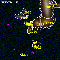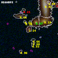 Black segments are analyzed here. Roll mouse over color images to view segments. Best viewed in a wide browser window (1200 pixels or more). Download SED & P(z) plots to view larger versions.