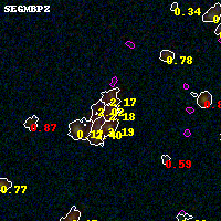 Black segments are analyzed here. Roll mouse over color images to view segments. Best viewed in a wide browser window (1200 pixels or more). Download SED & P(z) plots to view larger versions.