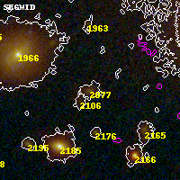 Object #2077   x,y = (2413, 2895)   RA, Dec = (00:32:11.616, 18:08:16.44) = (8.04840, 18.13790)   BPZ = 0.908 [0.762--0.957]   type = 8.80 (SB2_B10 - SB1_B10)   chisq2 = 1.21   ODDS = 0.77   z_cluster = 0.396