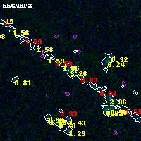 Black segments are analyzed here. Roll mouse over color images to view segments. Best viewed in a wide browser window (1200 pixels or more). Download SED & P(z) plots to view larger versions.