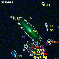Black segments are analyzed here. Roll mouse over color images to view segments. Best viewed in a wide browser window (1200 pixels or more). Download SED & P(z) plots to view larger versions.