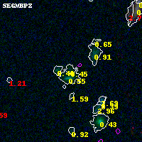 Black segments are analyzed here. Roll mouse over color images to view segments. Best viewed in a wide browser window (1200 pixels or more). Download SED & P(z) plots to view larger versions.