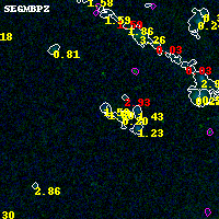 Black segments are analyzed here. Roll mouse over color images to view segments. Best viewed in a wide browser window (1200 pixels or more). Download SED & P(z) plots to view larger versions.