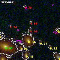 Black segments are analyzed here. Roll mouse over color images to view segments. Best viewed in a wide browser window (1200 pixels or more). Download SED & P(z) plots to view larger versions.
