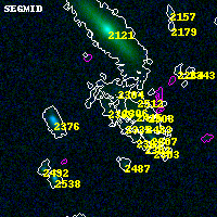 Black segments are analyzed here. Roll mouse over color images to view segments. Best viewed in a wide browser window (1200 pixels or more). Download SED & P(z) plots to view larger versions.
